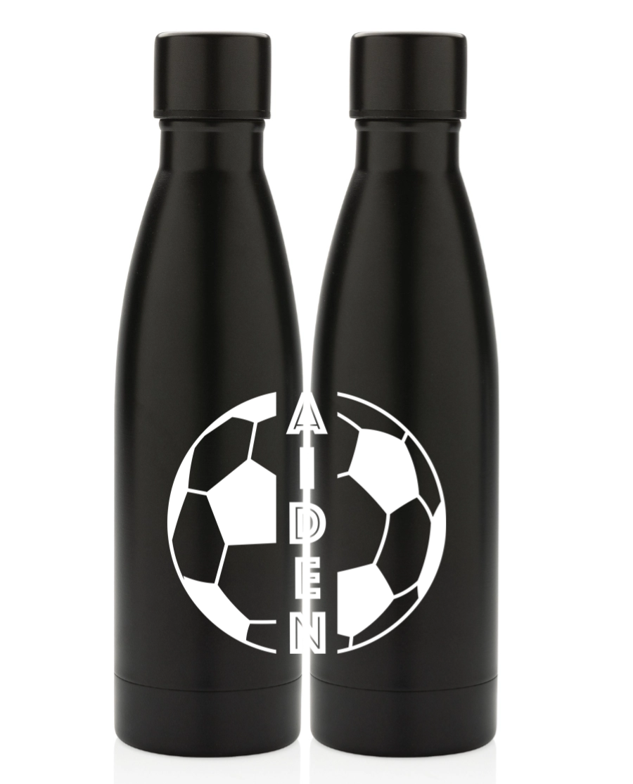 Vardinė gertuvė vandeniui Futbolas – dvigubos sienelės perdirbto nerūdijančio plieno vakuuminė konstrukcija išlaiko gėrimus atšaldytus iki 15 valandų arba šiltus iki 5 valandų.